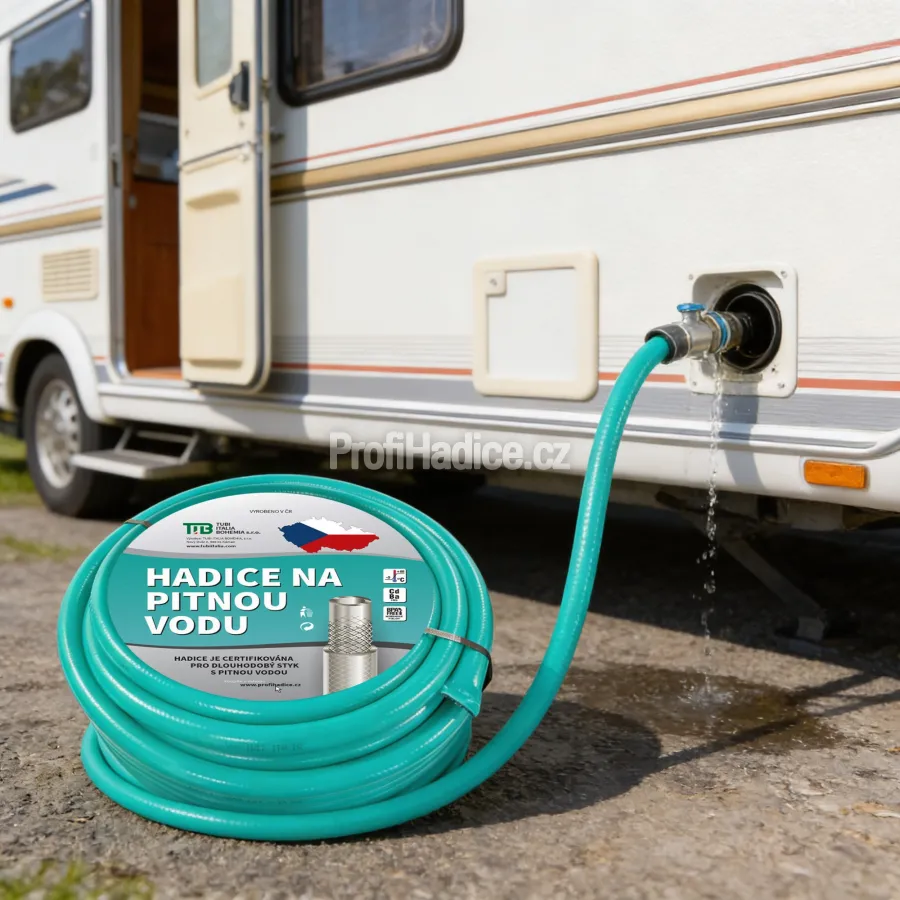Hadice je vyrobena z měkčeného PVC, je určena pro dlouhodobý styk s pitnou vodou dle Vyhlášky MZd č.409/2005 Sb. Je vyrobena v ČR. Je vhodná pro přívod pitné vody do obytných karavanů. Neprůhledná vnější vrstva zabraňuje tvorbě řas uvnitř hadice, pokud je vystavena slunečnímu záření.