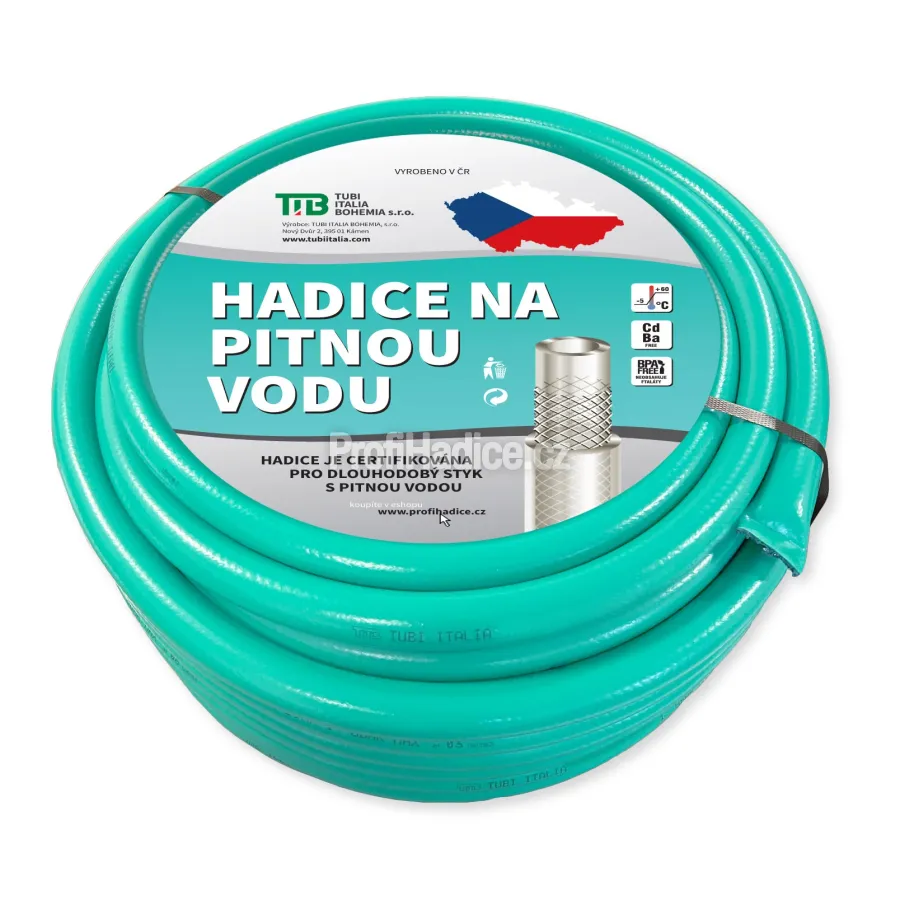 Hadice je vyrobena z měkčeného PVC, je určena pro dlouhodobý styk s pitnou vodou dle Vyhlášky MZd č.409/2005 Sb. Je vyrobena v ČR. Je vhodná pro přívod pitné vody do obytných karavanů. Neprůhledná vnější vrstva zabraňuje tvorbě řas uvnitř hadice, pokud je vystavena slunečnímu záření.