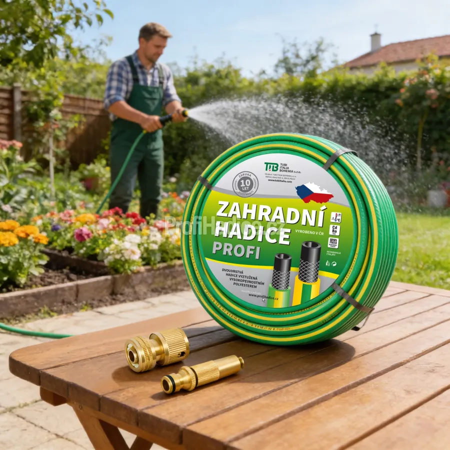 Vysoce odolná zahradní hadice z řady TUBI Profi. Její neprůhledná stěna zamezuje tvorbě zelených řas uvnitř hadice. Má silnou stěnu, je pružná a dobře se s ní manipuluje. Je vyrobena ze zdravotně nezávadných materiálů, neobsahuje žádné ftaláty. Vnitřní průměr 12 mm, pracovní tlak 12 bar.